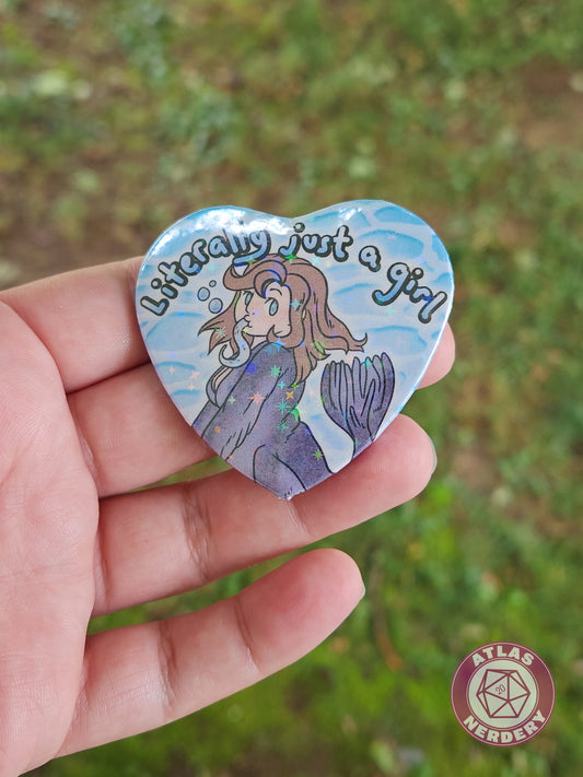Literally Just A Girl - 2.25” x 2” Holo Heart Pinback Button