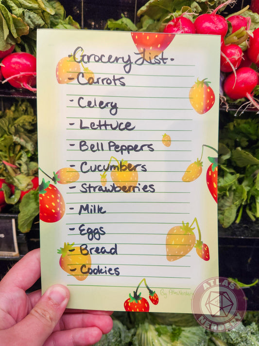 Large Strawberry Notepad - 8.5in x 5.5in Non-Sticky Tear-Away Memo Notepad 50 Pages - Grocery, Shopping, To-Do List