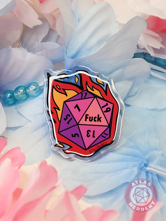 Flaming Crit Fail - 2" Acrylic Pin with Epoxy Dome Coating