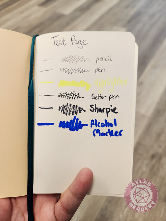 Dice and Potions Travel Sketchbook - A6 Size with 160 Pages, Green Ribbon Bookmark and Strap Closure